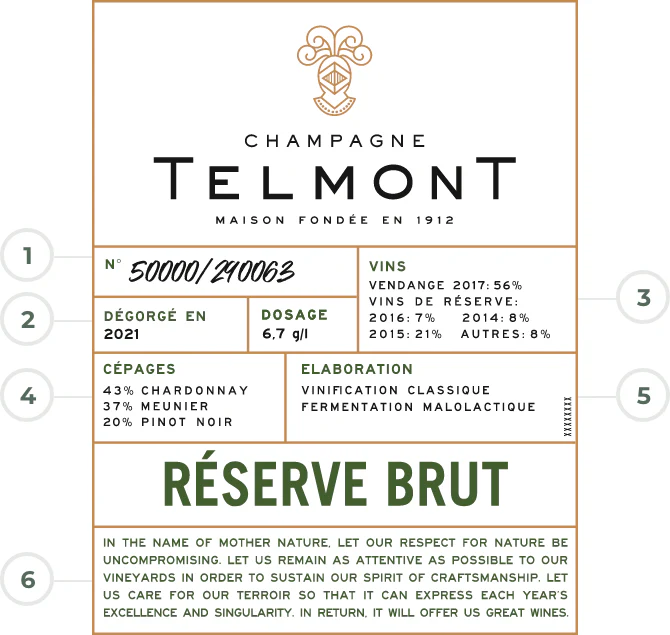 Each bottle is numbered to ensure the tracking of its provenance. The exact number of bottles in circulation for each cuvée is indicated. Telmont chooses the quality of its wine over the quantity of its production.